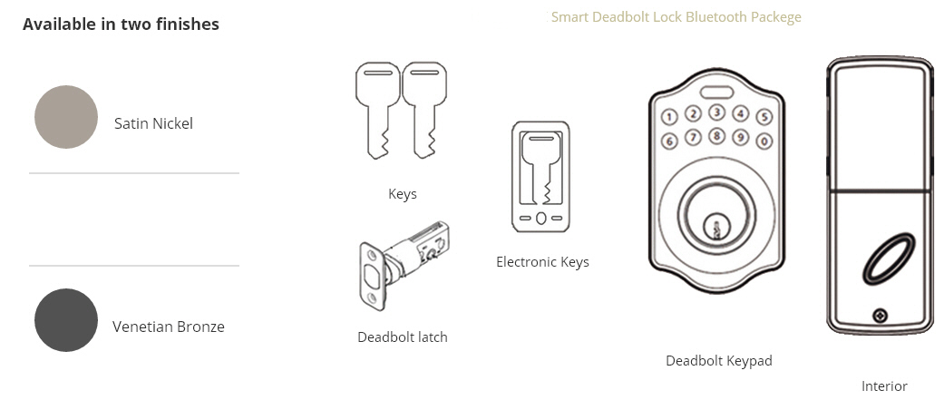 Your smartphone is now a smart key and more. Lock and unlock your door, create virtual keys for guests, and keep track of who comes and goes, all from your iOS or Android smartphone.      Never copy a key again. Create virtual keys for family and guests. Choose to grant access for a few weeks, a few hours, a few minutes, or even specific dates and times. Delete guest access any time in an instant.      No more fumbling for keys. Lark-Wi Smart Lock auto-locks behind you for peace of mind as you approach. Turn on or off whenever you want.      activity log tracks who enters and exits your home. And with unique keys for each user, you'll always know who opens your door and when. |